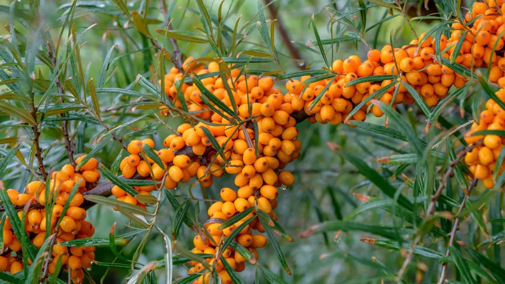 Wer noch einen sonnigen Platz im Garten hat, kann dort zum Beispiel Sanddorn (Hippophae rhamnoides) anpflanzen. Sanddorn, auch als „Zitrone des Nordens“ und Seedorn bekannt, ist ein Wildobstgehölz mit silbergrauen Blättern und kleinen orangefarbenen, ovalen Früchten. Diese Beeren sehen nicht nur hübsch aus, sondern sind auch sehr gesund. Sie enthalten mehr Vitamin C als Äpfel, Erdbeeren oder Orangen.