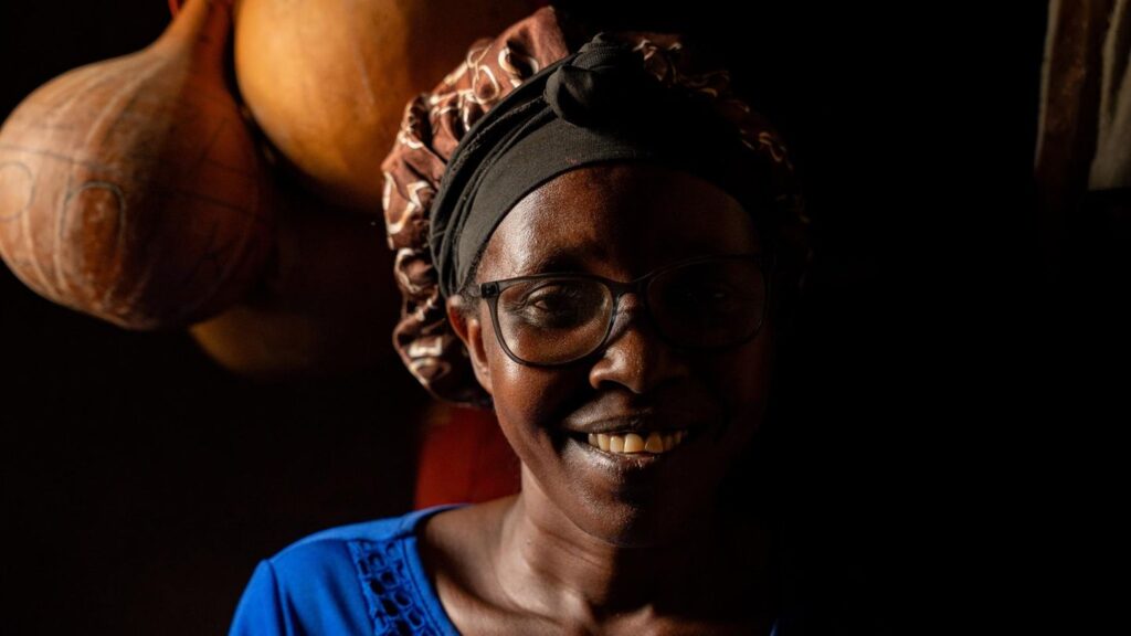 Wenn Aline* sich stark fühlt, breitet sie vor ihrem Haus eine Matte aus, holt die Rollen mit bunten Plastikbändern und beginnt, Körbe zu flechten, kleine, große, mit Henkel und ohne. Manchmal kommen Nachbarinnen vorbei und plaudern, manchmal setzen sich die beiden Waisenkinder, die sie bei sich aufgenommen hat, zu ihr auf die Decke und spielen mit den Bändern. Sie strahlt dann so, dass sich ihre riesige Brille ein bisschen von der Nase hebt.