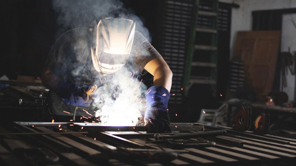 Professioneller-Schweisser-der-an-der-Werkbank-arbeitet
