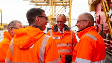 „Ich bin beeindruckt von der Leistungsfähigkeit dieses Standorts. Der Hafen Bremerhaven ist für den Welthandel unverzichtbar und ein strategisch wichtiger Platz – nicht nur für Deutschland, sondern für die gesamte Europäische Union“, sagte Bundeskanzler Friedrich Merz (CDU) am 7. Oktober bei seinem Besuch am BLG AutoTerminal und am Eurogate Containerterminal Bremerhaven. Die deutsche Exportwirtschaft wäre ohne leistungsfähige Häfen wie Bremerhaven „nicht denkbar“ sagte Merz, der seinen Antrittsbesuch beim Bremer Senat nutzte, um sich ein Bild von der Leistungsfähigkeit der bremischen Häfen zu machen.