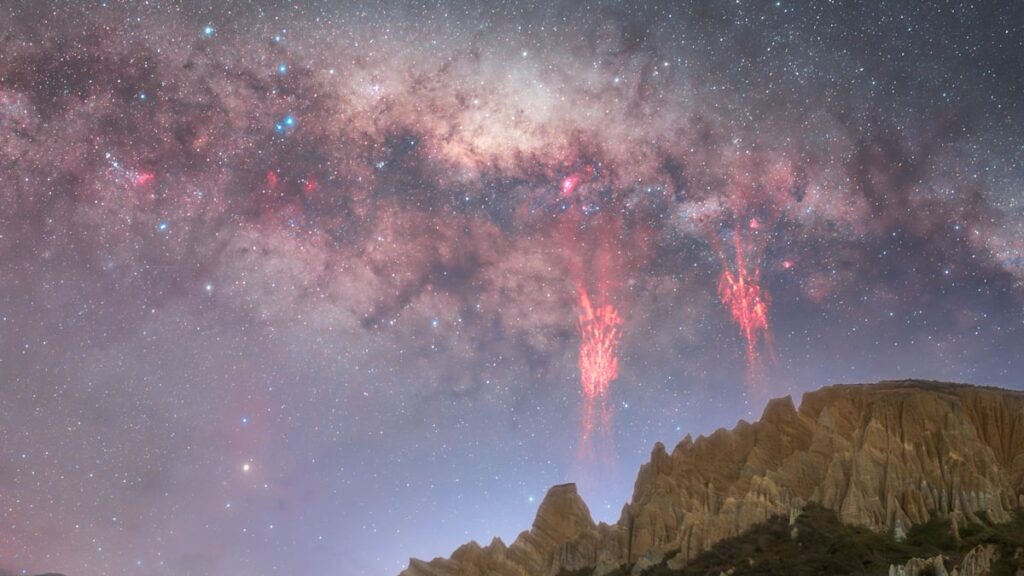 Drei Naturfotografen wollten in Neuseeland die Milchstraße ablichten. Doch ein nahendes Gewitter bescherte den drei Männern ein unvergessliches Erlebnis. Sie sahen, wie sich ein einzigartiges Wetterphänomen über ihnen entlud. Was steckt hinter den „Roten Kobolden“?