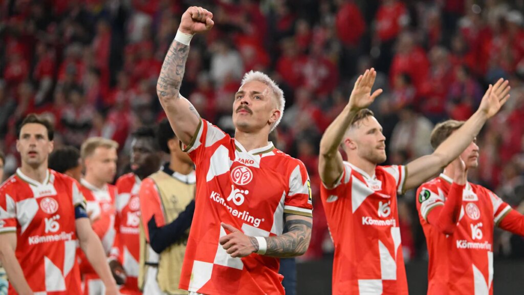 Das sitzende Mainzer Fußballvolk erhob sich am Donnerstag nach gerade einmal 20 Minuten schon zum dritten Mal begeistert von seinen Plätzen. Die Ovationen in der ausverkauften Arena waren der gerechte Lohn für die Mannschaft von Mainz 05, die dank eines furiosen Starts und zwei sehenswerter Treffer gegen Racing Straßburg im Viertelfinale der Conference League in Führung lag.