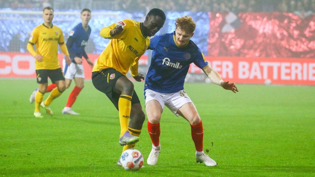 Mit einem Heimsieg gegen Dynamo Dresden verschafft sich Holstein Kiel im Tabellenkeller der 2. Liga erst einmal Luft. Nach zuvor drei Remis landeten die „Störche“ am Samstag zum Abschluss des Jahres einen 2:1 (1:1)-Erfolg.
