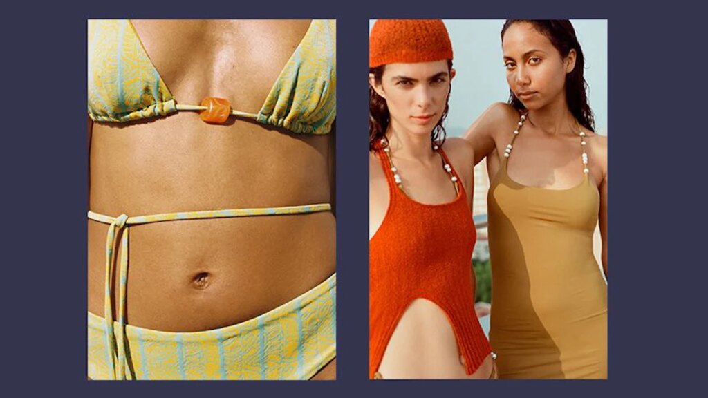 Badezeug gibt es ja – hahaha – wie Sand am Meer, aber etwas wirklich Tolles zu entdecken, ist ungefähr so schwer, wie den passenden BH zu finden. Sexy soll es sein, aber noch zum Schwimmen (und Reinspringen) geeignet, gute Qualität und hochwertig produziert ist heute Pflicht, aber trotzdem sollten die paar Quadratzentimeter Stoff noch halbwegs bezahlbar sein. Caro Luna stammt aus Barcelona und wurde vor fünf Jahren von der Designerin Carolina Ferrer gegründet. Alles wird vor Ort entworfen und produziert. Der mediterrane Einfluss ist unverkennbar: Ferrer hängt gern kleine Schmuckperlen und Muscheln an ihre Bikinis und liebt bunte Farben. Frauen wie Überinfluencerin Leandra Medine tragen die mondäneren Modelle mit Gold- und Silberdetails, die es in einer Sonderkollektion für das neue Luxushotel SLS jetzt auch in Swimmingpool-Türkis gibt.