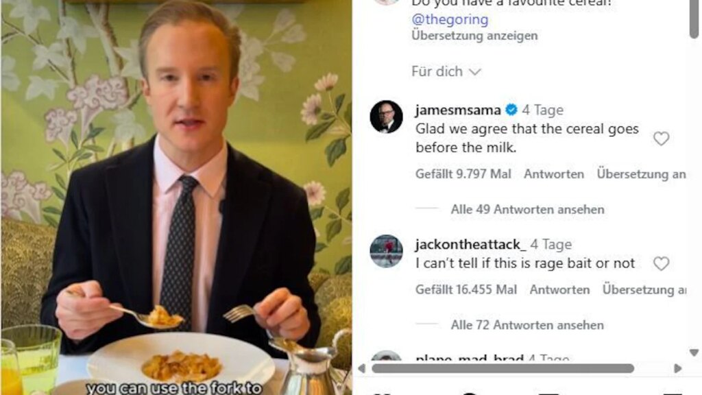 Summa summarum ist davon auszugehen, dass William Hansons auf Instagram verbreitete Handreichung, der zufolge Müsli mit Löffel und Gabel zu essen sei, ernst gemeint war.