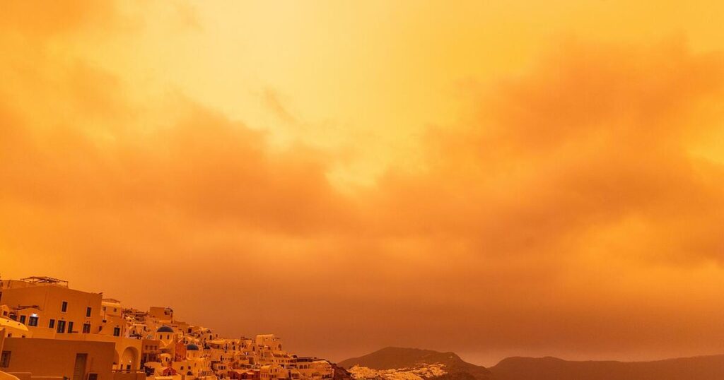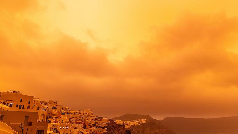 Auf Kreta sowie den Kykladeninseln Santorini, Naxos und Mykonos brachten starke Südwinde Saharastaub. Dieser färbte den Himmel rötlich und schränkte die Sicht deutlich ein. Meteorologen erwarten weiterhin kräftige Regenfälle, Gewitter und örtlich Hagel. Für Kreta gilt eine erhöhte Unwetterwarnung. Eine Entspannung wird erst für Freitagabend erwartet.