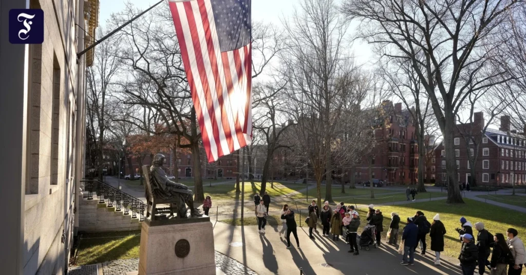 Studenten fotografieren sich in der Nähe einer John-Harvard-Statue auf dem Campus der Harvard University.AP