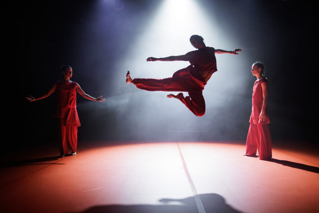 Teil 2: „Vault“. Auf die zarte Klarheit des Geborenwerdens folgt die diffuse Hektik des Daseins. Also werden Nebelmaschinen und eiskalt flackerndes Licht angestellt. Ein glamouröses Quartett exerziert mit feingliedriger Elastizität einen zuckenden Tanz der Arme. So eitel wie verloren drehen sich die Tänzer:innen auch um sich selbst. Sie wirken anmutig in ihrer raumgreifenden Aggressivität. Einem manischen Begehren.