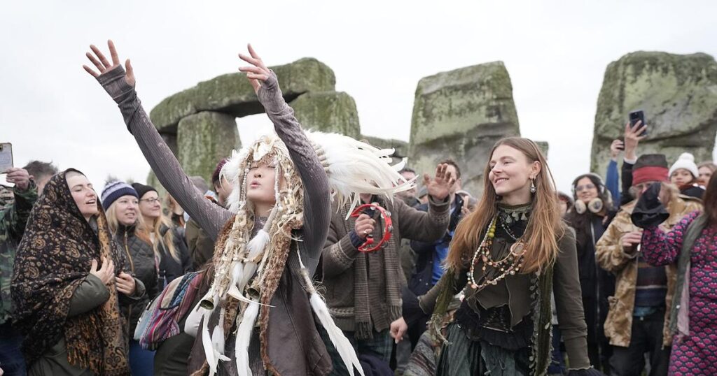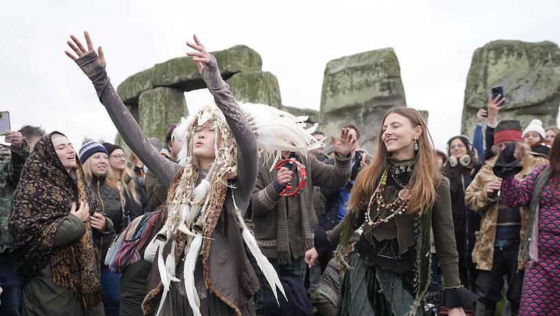 Tausende Menschen haben am weltberühmten Monument Stonehenge im englischen Salisbury traditionell die Wintersonnenwende gefeiert. Sie begrüßten dort am Sonntagmorgen den Sonnenaufgang, der den kürzesten Tag des Jahres einläutet. Auf Bildern ist zu sehen, wie die zahlreichen Besucher rund um den berühmten Steinkreis tanzen, singen und musizieren. Mit der Wintersonnenwende werden die Tage nun wieder länger.
