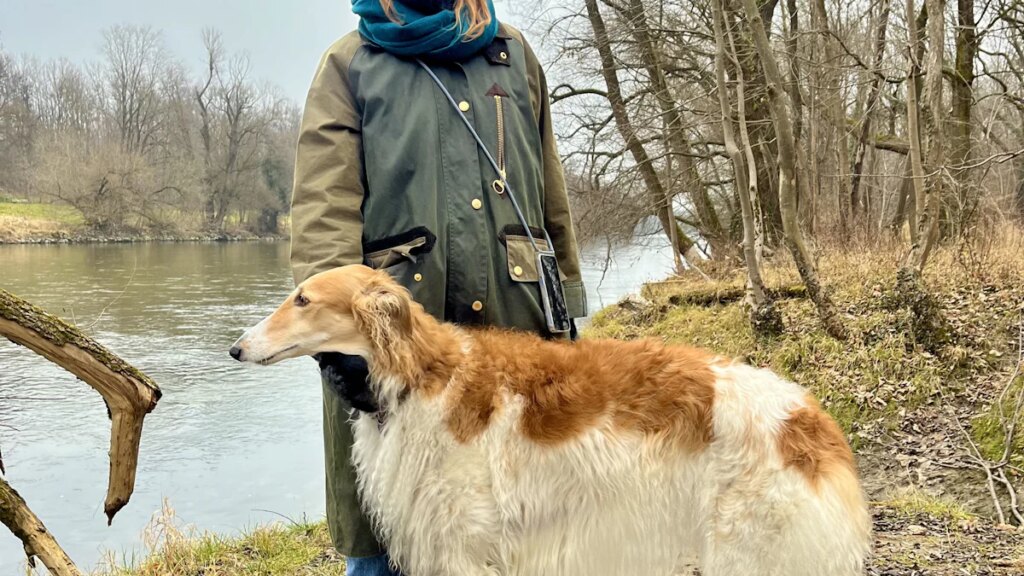Mascha ist ein Barsoi: lange, spitze Schnauze, 70 Zentimeter Widerristhöhe, von hinten gesehen dünn wie ein Strich, von der Seite erstaunlich großflächig. Als Kerstin Holzers Sohn 2020 von zu Hause auszog, zog Mascha ein. „Eigentlich hatte ich mir nicht eine extravagante Rasse wie den Barsoi in den Kopf gesetzt“, sagt sie, „aber ich habe mir als ersten Hund kein Tier aus dem Tierschutz zugetraut, weil ich zu unerfahren war für etwaige Traumatisierungen.“ Während der Pandemie waren besonders begehrte Rassen wie Labradoodle, Dackel und Golden Retriever bei den meisten Züchtern kaum zu bekommen, deshalb wurde es ein russischer Windhund.