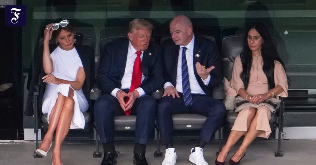 Fußball-Fans der ersten Reihe: Melania Trump (links nach rechts), US-Präsident Donald Trump, FIFA-Präsident Gianni Infantino und seine Frau Leena Al Ashqar