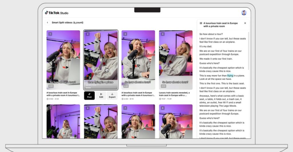 Smart Split is an AI-powered editing tool that can automatically edit longer videos into smaller clips. While it works with videos that are longer than a minute, TikTok suggests it’s useful for long podcast recordings or videos captured throughout an entire day by a wearable camera. You select what parts of the video you want turned into shorter clips and Smart Split will handle the rest including choosing the length, generating captions, and even reframing content vertically. It’s now available globally through the TikTok Studio Web management platform.