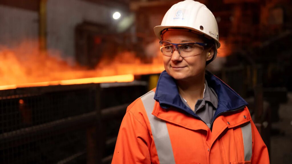 Dieses Stahlwerk hat die Ausmaße einer Kleinstadt, und es ist eine Stadt, die niemals schläft. Ständig scheppert und rumst es auf dem zehn Quadratkilometer großen Gelände. Güterloks ziehen Waggons mit flüssigem glühendem Eisen, das Schienennetz umfasst 470 Kilometer. Am werkseigenen Rheinhafen entladen Schiffe Erz oder Kohle. Die Dampfwolken der Kokerei sind von Weitem zu sehen. Und wenn in den Hochöfen nachts die Schlacke abgestochen wird, glüht der Himmel über dem Duisburger Norden. Marie Jaroni ist gerne und häufig auf dem Gelände unterwegs. Die 41-Jährige ist so etwas wie die Bürgermeisterin dieser Kleinstadt: Seit November leitet sie als Vorstandschefin Thyssenkrupp Steel Europe (TKSE), Deutschlands größten Stahlkonzern.
