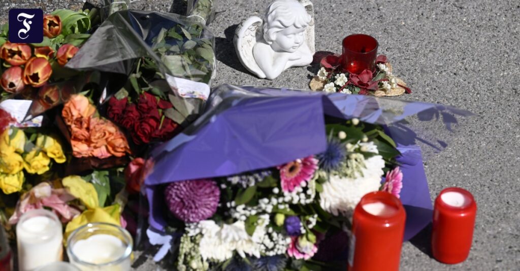 Am Tatort liegen Blumen, Kerzen und eine Engelsfigur.