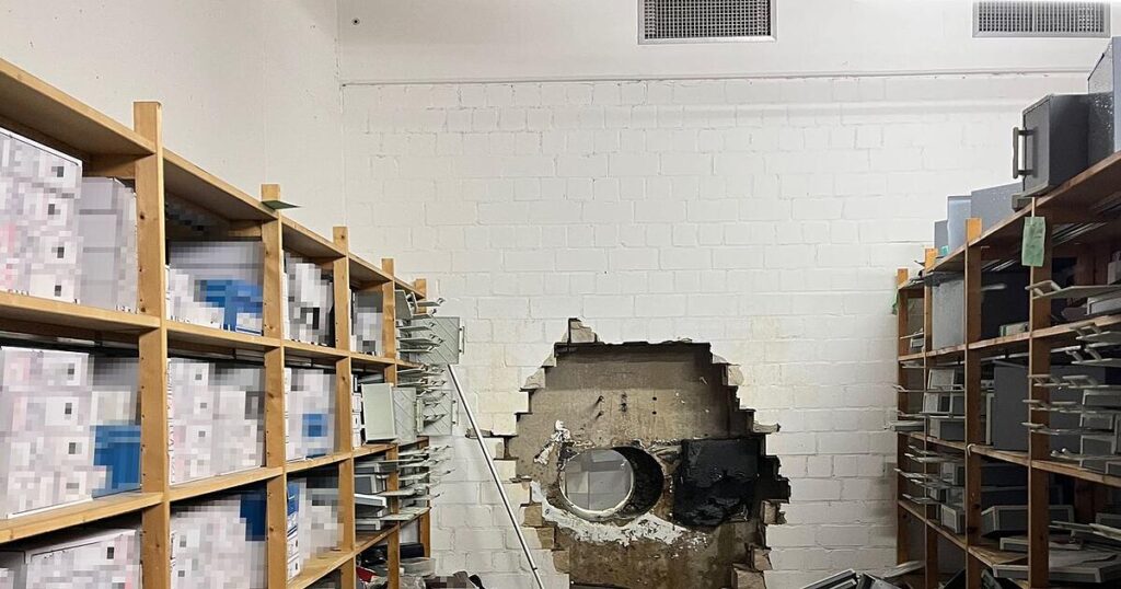 Sie bohrten ein Loch in den Tresorraum: Unbekannte Täter sind in Gelsenkirchen in ein Bankgebäude eingebrochen und haben dabei mehrere Wertschließfächer durchsucht. Nach Polizeiangaben gelangten die Täter mithilfe eines großen Bohrers in den Tresorraum. Entdeckt wurde der Einbruch am frühen Montagmorgen durch einen Brandmeldealarm, der um 3.58 Uhr bei der Feuerwehr einging.