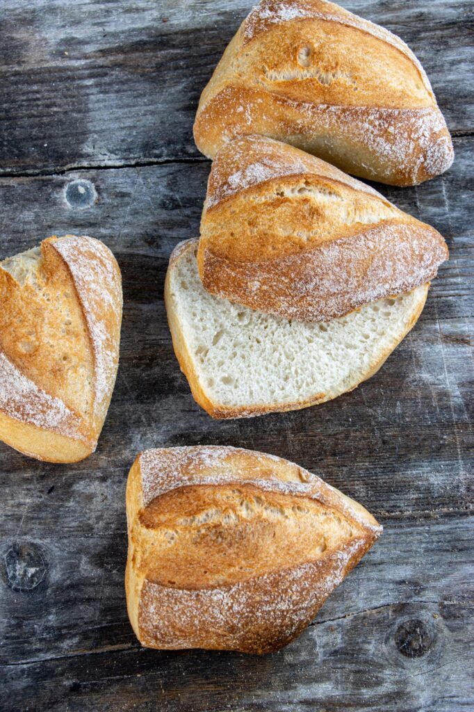 Anschließend bleibt der Teig 3 Stunden im Raum stehen, wird dabei nach 2 Stunden gedehnt und gefaltet und darf dann 12 – 18 Stunden im Kühlschrank reifen. Danach wird nur noch portioniert und gebacken.