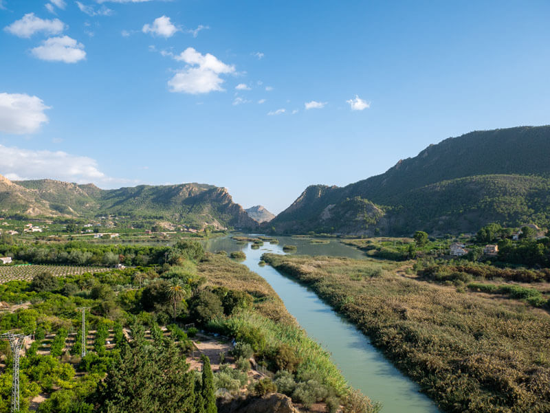 Ein schmaler Streifen Land begleitet den Segura Fluss zwischen den kargen Hügeln hindurch. Als die berberischen Stämme die iberische Halbinsel eroberten, ließen sie sich in dieser fruchtbaren Schlucht nieder und begannen damit, ausgeklügelte Bewässerungskanäle anzulegen, um das Wasser klug zu nutzen. Schnell entwickelte sich das Tal in eine Garten Eden, eine grüne Oase in einem eher trockenen Landstrich, in dem Menschen jahrundertelang Obst und Gemüse anbauten.