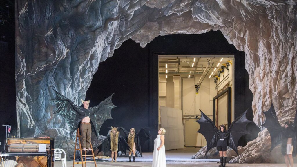 Besser als Statistiken, Horrormeldungen und vernünftige Ansprachen macht dieser freundliche Untotentanz bewusst, dass es im Kern nur die menschliche Verhaltensänderung sein kann, die unsere Spezies rettet. Diese Vampire sind weder gierig noch egoman, weder rücksichtslos noch neidisch, weder besitzergreifend noch ewig unzufrieden. Vielleicht macht genau das sie unsterblich. Dass sie so sympathisch und freundlich sind bei all dem Blödsinn, den sie an diesem Abend vorführen. Am Ende tanzen sie für das Publikum in einer gigantischen Höhle noch ein Fledermaus-Ballett, auch dieses wieder irgendwie unfertig, ja dilettantisch, aber stolz. Es wirkt wie eine freundliche Warnung in den Saal: Eure Leistung bringt euch alle um! Dann räumen sie auf, verschwinden wieder in ihre Gräber und singen ergreifend: „Ach, wie flüchtig …“