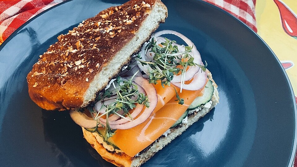 Veganer Räucherlax Burger oder Bagel von energybird