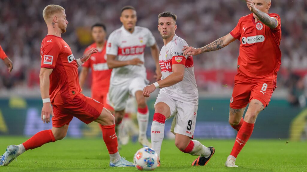 Fürs Erste lässt sich sagen, dass Trainer Sebastian Hoeneß zu seinem Glück gezwungen wurde. Der feine Kombinationsfußball, den er bevorzugt, verlangt eigentlich nach technischen Stürmern, aber nun setzt er alles auf den körperlichen Demirovic. Einerseits, weil er muss und es seinen Vorgesetzten am letzten Transfertag nicht mehr gelang, einen Woltemade-Nachfolger ins Haus zu holen; aber schon auch, weil er’s will. „Eine Eins mit Sternchen“ habe sich Demirovic für seine Leistung gegen St. Pauli verdient, sagte Hoeneß am Mittwoch in der Pressekonferenz vor dem Europa-League-Spiel. Auch auf dem Podium: Demirovic, sein Kapitän.