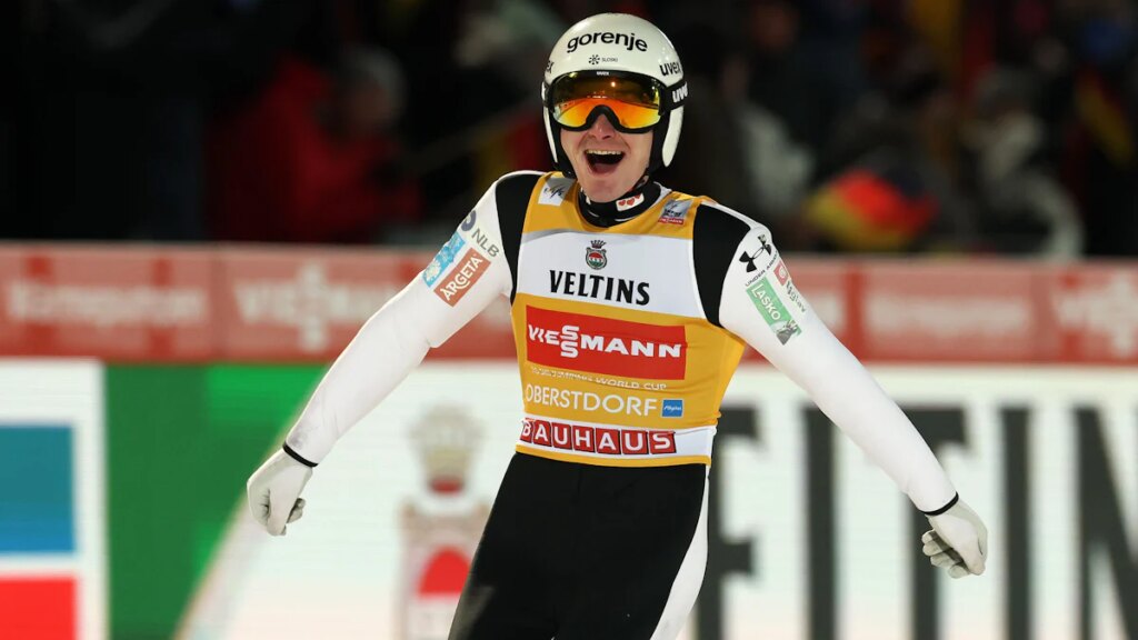Domen Prevc flog und flog und flog, und er wollte überhaupt nicht mehr aufhören zu fliegen. Bei 140 Metern landete er im zweiten Durchgang des Auftaktspringens der Vierschanzentournee in Oberstdorf. Sein erster Sprung hatte ihn sogar noch 1,5 Meter weiter getragen. Und Prevc, dem zuvor bis zur Station in Engelberg fünf Weltcupsiege in Serie gelungen waren, reckte gar nicht mal so überschwänglich die Arme in die Höhe. Der 26-jährige Slowene kennt das ja schon mit dem Jubeln. 17,5 Punkte lag Prevc am Ende vor Tournee-Titelverteidiger Daniel Tschofenig aus Österreich. Das sind Welten im Skispringen.