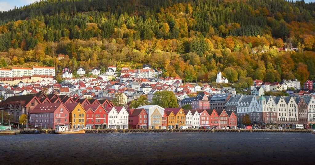 Irgendwie hängt in Bergen alles mit Wasser zusammen. Die Stadt im Südwesten Norwegens liegt eingebettet zwischen den steilen Hängen einer Fjordlandschaft. Das grünblaue Wasser kalt ist wie die Gletscherschmelze und für die Region lebenswichtig. Auch von oben kommt es reichlich: Mit rund 200 Regentagen pro Jahr gilt Bergen als die regenreichste Stadt Europas.