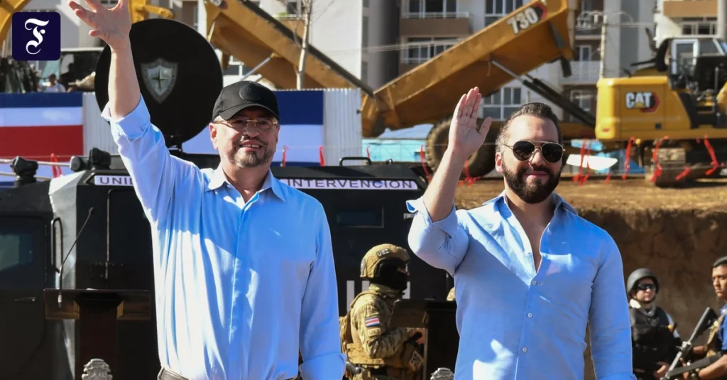 Keine drei Wochen vor den Präsidenten- und Parlamentswahlen an diesem Sonntag in Costa Rica stehen zwei Männer vor einer Baustelle in Alajuela, einem Vorort der Hauptstadt San José: Präsident Rodrigo Chaves und sein Gast, El Salvadors Präsident Nayib Bukele.