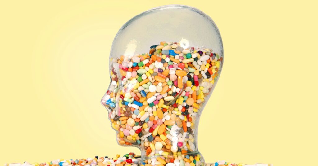 Schnell noch runter mit dem Grüntee-Extrakt, mit Astaxanthin, die Omega-3-Kapseln nicht zu vergessen, Kreatin natürlich, um die Leistung zu steigern, dann der Multivitamin-Komplex. Später Magnesium und Kollagen, und bevor es ins Bett geht die tägliche Dosis Melatonin. Die Maschine muss ja laufen, und worauf sollen Erschöpfung und dieses Leben ohne Saft und Kraft sonst zurückzuführen sein, wenn nicht auf einen Mangel an Vitalstoffen? Was bleibt einem, als mit Nahrungsergänzungsmitteln, Mikronährstoffen und ein paar Lifehacks zu kompensieren, was der Körper nicht mehr selbst schafft? Immerhin gibt es Pulver und Pillen für jede Lebenslage – und für jede Krise. Kaum ein Konsumsegment boomt so sehr wie die Nahrungsergänzungsmittel.