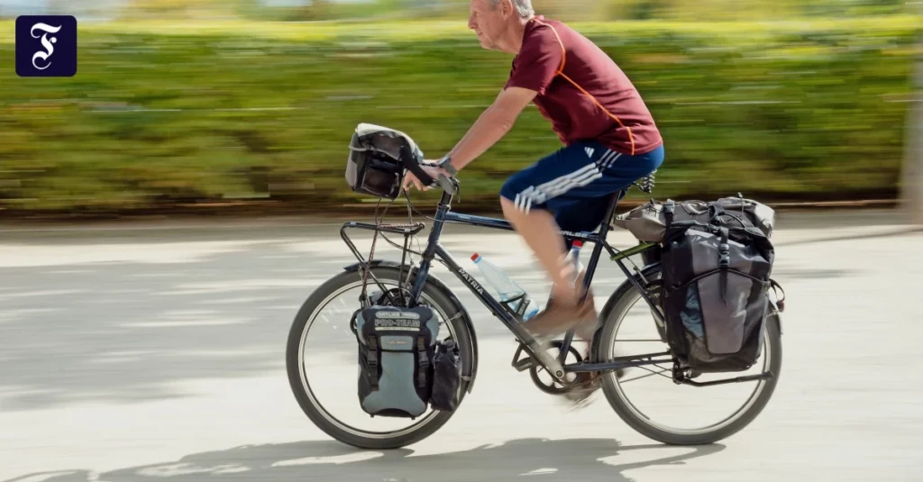 Manche Extremsportarten sind so extrem, dass sie schon wieder normal aus­sehen. Peter Smolka jedenfalls macht den Eindruck, als würde er ­gerade in den Feierabend radeln. Er trägt eine knielange Adidas-Hose und ein ­T-Shirt, sein Fahrrad sieht aus wie ein gewöhnliches Stadtrad, und er trägt keinen Helm. Was stutzig macht, sind die fünf Satteltaschen. Und die folienverpackte Karte auf dem Lenkrad, unter der auch ein kleines Fahrradnavi befestigt ist. Noch zeigt es Frankfurt und Umgebung. Aber bald schon wird es Mauretanien, Togo und Südafrika zeigen. Wegstrecke: 45.000 Kilometer. Wiederkehr: in zweieinhalb Jahren.