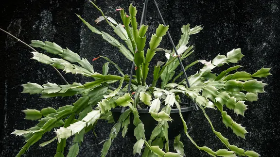 Neben anderen dekorativen Zimmerpflanzen wie dem Weihnachtsstern oder der Amaryllis gehören auch Weihnachtskakteen (Schlumbergera truncata) zu den klassischen weihnachtlich-saisonalen Gewächsen. Zwischen November und Januar bilden sie ihre typischen leuchtenden Blüten in Weiß, Rosa, Rot, Orange, Gelb oder Violett. Besonders gut macht sich die stachellose Hängepflanze in einer Blumenampel oder auf einem Regal.
