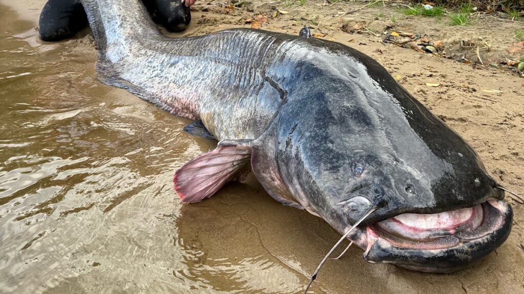 Nachdem die Angler aus Polen den rekordverdächtigen Wels gemessen und fotografiert hatten, wurde er wieder ins Wasser gelassen – und darf weiter wachsen.
