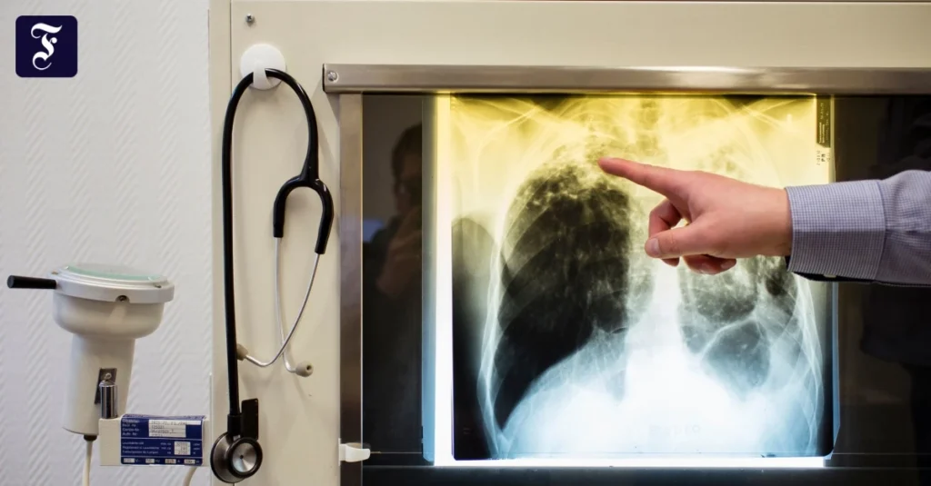 Ein Arzt zeigt im Jahr 2016 einen Tuberkulose-Fall anhand eines Röntgenbildes in seinem Büro im Tuberkulosezentrum in Berlin.dpa