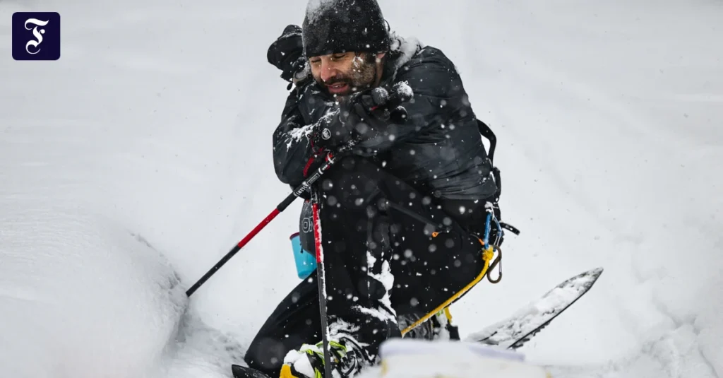 Etwa zwei Liter stark gezuckerter Tee bringen neues Leben in die Gliedmaßen. Der Magen überlegt kurz, gibt dann das Okay. Ich zelebriere den kleinen Sieg und kaue einige Minuten an einem gefrorenen Stück Käse, bis genug Speichel zum Schlucken da ist – dazu eine Packung billiger Ramen-Nudeln. Auf geht es mit frischer Energie und in Schrittgeschwindigkeit entlang vereister Seenplatten und im Schatten massiver Felsenformationen. Die Freude ist nicht von Dauer, die Laufzeiten werden immer häufiger von Pausen unterbrochen. Scharfer Wind, minus zwölf Grad, gefühlt minus 20, und überall feuchter, weicher Schnee. Die Schneeschuhe schneiden in die Füße. Als Hilfe für kurze Passagen waren sie gedacht, nicht als Dauerausrüstung für mehr als 100 Kilometer. „Hilft nichts. Nimm es hin!“
