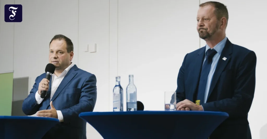 Dennis Rehbein (CDU) und Michael Eiche (AfD) debattieren