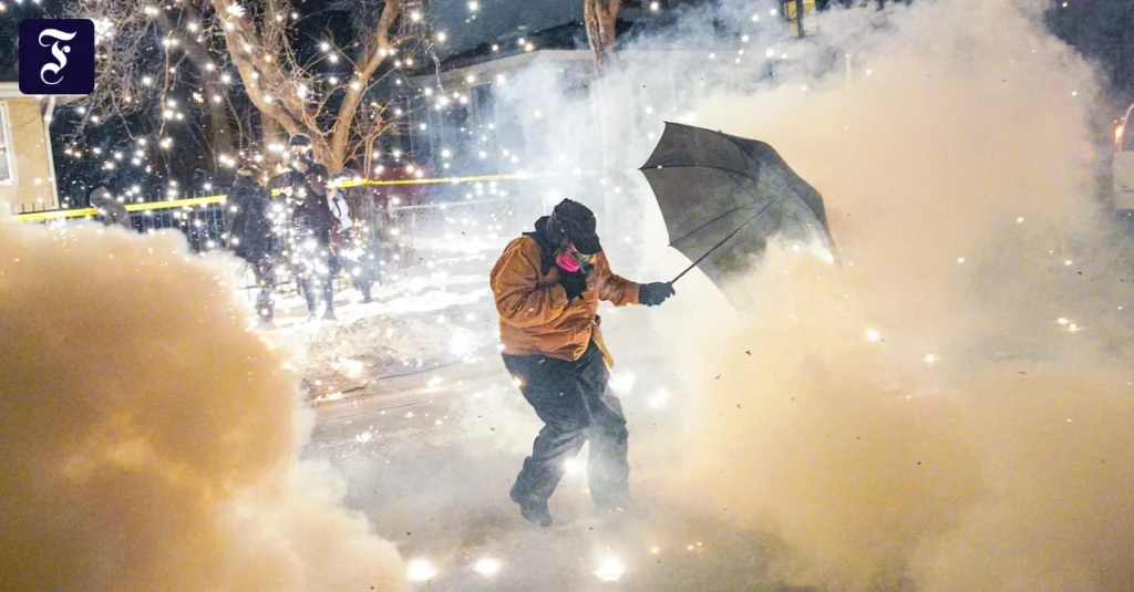 „Habt ihr nichts gelernt“, fragt ein ICE-Agent auf einer Handyaufnahme, die dieser Tage in den sozialen Medien die Runde macht. Gemeint ist der Widerstand der Demonstranten, angespielt wird auf den Tod von Renee Good, es sind unverhohlene Drohungen. Man sei inzwischen einiges gewöhnt, sagt Jamie Schwesnedl, der Inhaber von „Moon Palace Books“. Der Laden wurde 2020 berühmt, weil Demonstranten nach dem Mord an George Floyd die Polizeistation gegenüber anzündeten. Selbst bei erfahrenen Aktivisten wie Schwesnedl scheinen in dieser Woche der Schock und die Ratlosigkeit vor der brutalen Gewalt zu dominieren, die in ihre Stadt gekommen ist. Sie sind kämpferisch, aber sie fahren auf Sicht, verbreiten wenig von der ideologischen Sicherheit, die manche ihnen unterstellen. Ja, Schwesnedl sieht den heutigen Aktivismus in der Tradition der schwarzen Befreiungsbewegungen, der gewaltlosen Boykotte, der Black-Lives-Matter-Bewegung.