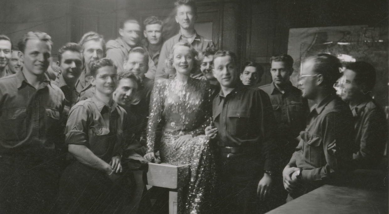 Dicht hinter der Front ist auch eine kleine Crew Truppenbetreuer unterwegs. An ihrer Spitze: Marlene Dietrich. Seit Frühjahr 1944 legt sich die Schauspielerin, die 15 Jahre zuvor durch den Film „Der blaue Engel“ bekannt und kurz darauf durch ihren ersten Hollywood-Film zum Weltstar geworden war, wie niemand sonst aus dem amerikanischen Showbusiness an vorderster Front bei der Truppenbetreuung ins Zeug. Die Diva – die 1939 aus Protest gegen das Hitler-Regime ihre deutsche gegen die amerikanische Staatsbürgerschaft eingetauscht hatte, steht in Diensten der amerikanischen United Service Organizations, kurz U.S.O.