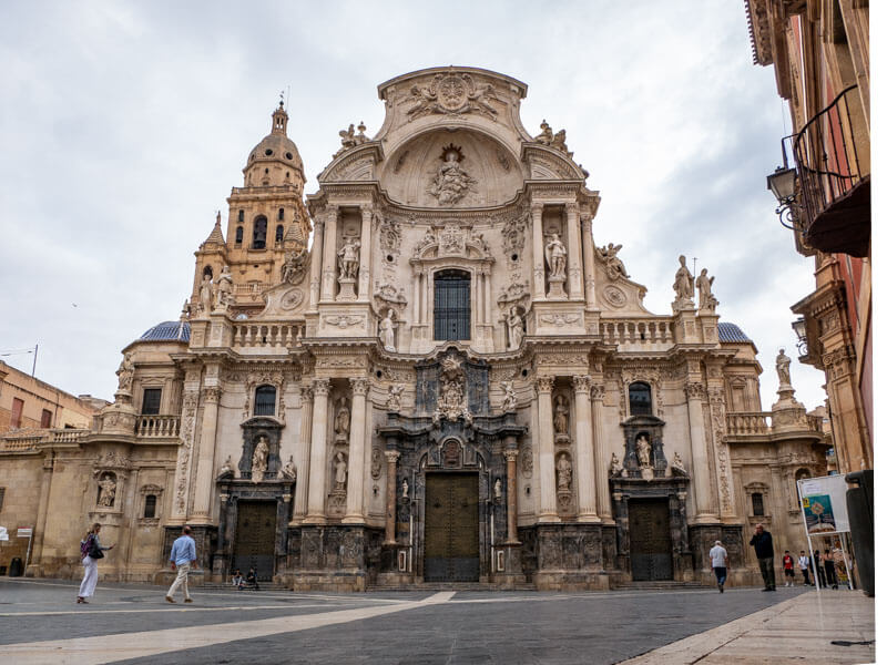 Natürlich zeigt Mayca mir auch die Kathedrale von Murcia. Ursprünglich befand sich der Bischofssitz in Cartagena, doch im Laufe des 14. Jahrhunderts bevorzugten die Bischöfe das Leben in der Metropole und zogen um. Ohne eine Genehmigung des Vatikans veranlasste Rey Sancho IV schließlich den Bau einer neuen Kathedrale in Murcia. So kam es zu dem kuriosen Fakt, dass die Kathedrale des Bistums Cartagena nicht in Cartagena, sondern in Murcia steht. 1391 begann man mit der Errichtung des neuen Gotteshauses, an dem so viele Jahrhunderte gebaut wurde, dass heute Elemente der verschiedenen Epochen und Baustile, von Gotik über Renaissance und Barock zu finden sind.