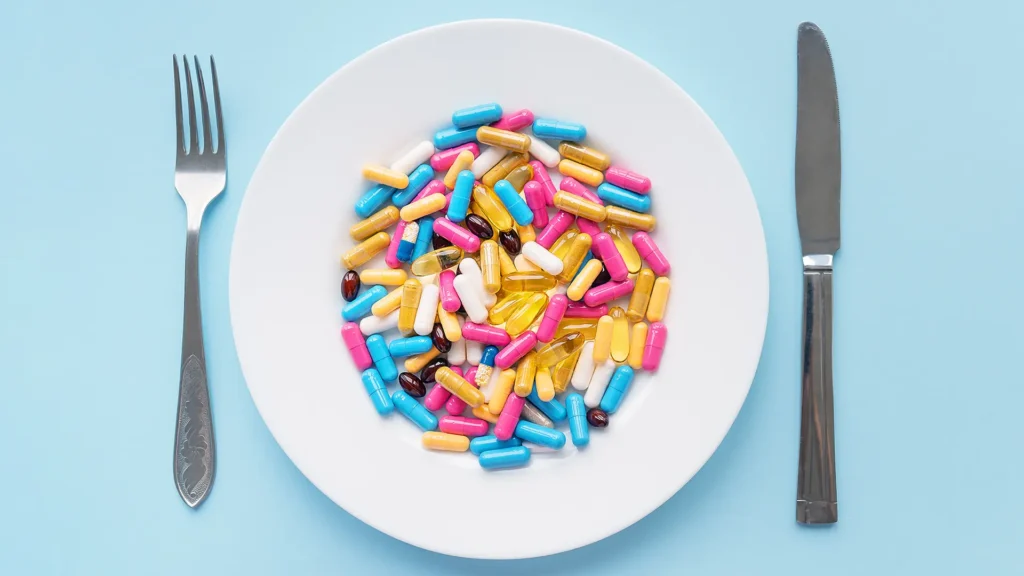 Nahrungsergänzungsmittel liegen auf einem Teller. | Colourbox, Sergiy Artsaba