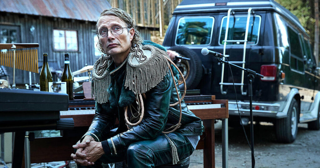 Tatsächlich, um die Beatles geht’s auch. Manfred (Mads Mikkelsen) hält sich für John Lennon und möchte auch so genannt werden. Wenn ihn jemand mit seinem alten Namen anspricht, rastet er aus und lässt sich aus einem fahrenden Auto oder einem Fenster fallen. Und nebenbei klaut er auch noch fremde Hunde.