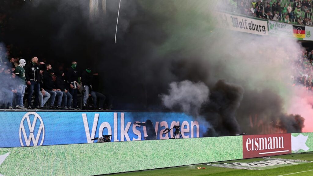 Dichte schwarze Rauchschwaden zogen durch das Stadion. Ordner marschierten vor dem Wolfsburger Fanblock auf, um einen Platzsturm zu verhindern. Zum Verhalten der Wolfsburger Fans sagte Polzin: „Der deutsche Fußball lebt von der Emotionalität seiner Fanlager, aber schön ist so etwas natürlich nicht.“