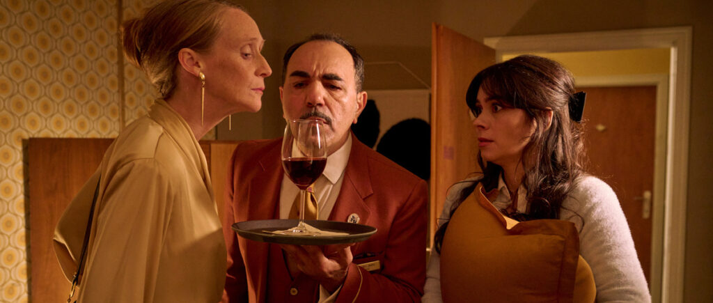 Denn die Idee einer chaotischen Hotelbelegschaft ist in Anbetracht Dutzender Formate vom „Schloss am Wörtersee“ bis zu „The White Lotus“ zwar keine Revolution, dank der ausgeleuchteten Spätschicht aber durchaus originell. Und Headwriterin Melina Natale merkt man die „Faszination fürs einzigartige Soziotop der Hotelbar“ also an, wo aus ihrer Sicht „unterschiedliche Fremde in einem so vertrauten Umfeld aufeinander“ treffen. Achtmal 25 Minuten lang erleben wir gastronomische Archetypen, die pro Folge zwei, drei Besucher betreuen.