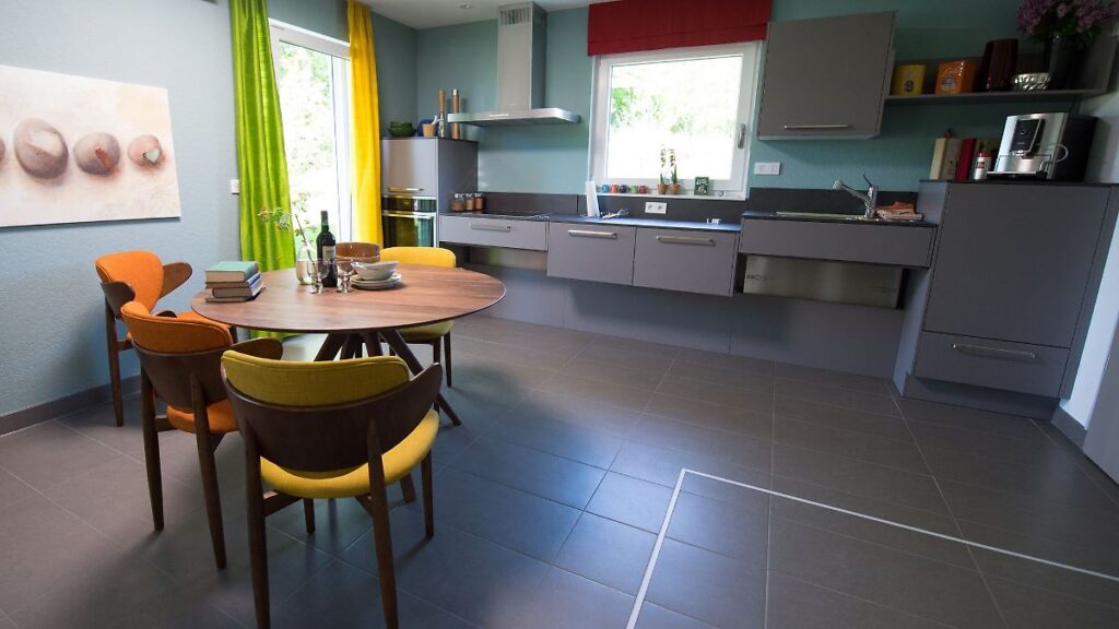 „Im Alter kann es problematisch sein, wenn man sich tief bücken oder hoch strecken muss“, sagt Simon Eggert. Um Töpfe und Pfannen einfacher zu erreichen, rät Eggert dazu, in den Küchenunterschränken ausfahrbare Schienen zu montieren. Außerdem ist es sinnvoll, wenn man Elektrogeräte möglichst erhöht stellt. Damit man etwa den Kühlschrank gut erreichen sowie Backofen und Geschirrspüler einfacher bedienen kann, so Simon Eggert.