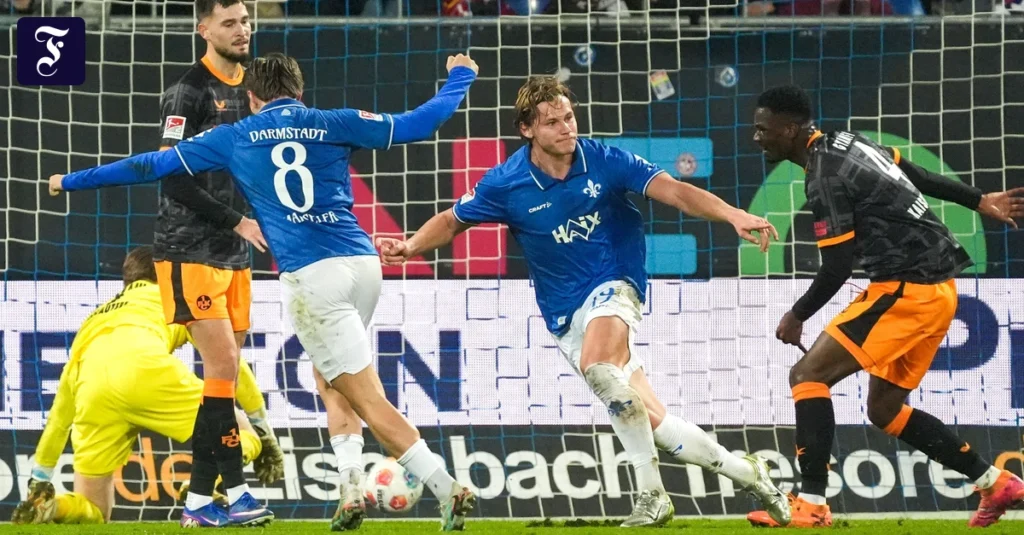 FCK-Trainer Torsten Lieberknecht erlebte eine bittere Rückkehr an seine alte Wirkungsstätte. Denn Fraser Hornby (5. Minute/Foulelfmeter), der für den verletzten Torjäger Isac Lidberg in die Mannschaft gerückte Fynn Lakenmacher (29.) sowie Kai Klefisch (45.) machten schon vor der Pause alles klar für die Hausherren. Luca Marseiler (90.+2) legte im mit 17.810 ausverkauften Merck Stadion am Böllenfalltor später noch nach.
